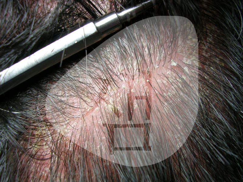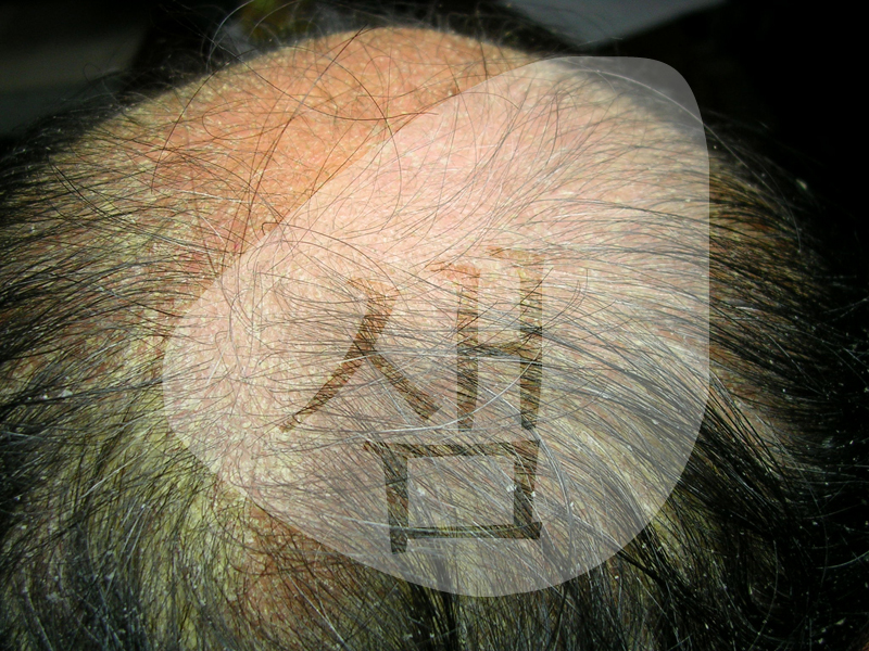 <주소증>- 지루성두피염에 의한 가피가 심하고, 염증소견이 확연한 경우로 오랜 기간 지속되서 탈모가 많이 진행된 경우였음.지루성탈모가 심하게 진행된 경우는 지루성두피염을 치료후 탈모까지 치