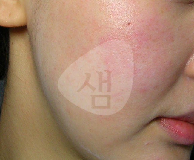 안면부 습진형으로 홍조가 퍼지는 경우임