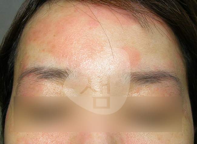 안면부 습진형으로 홍조가 퍼지는 경우에 등부위 병변이 동반된 경우임