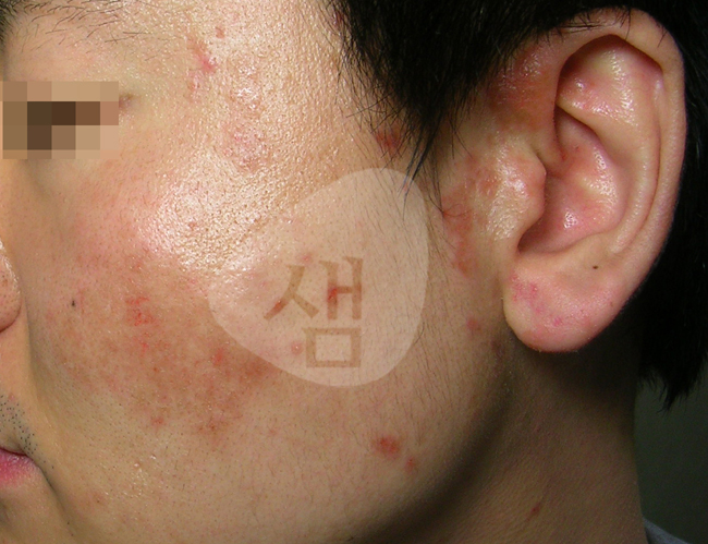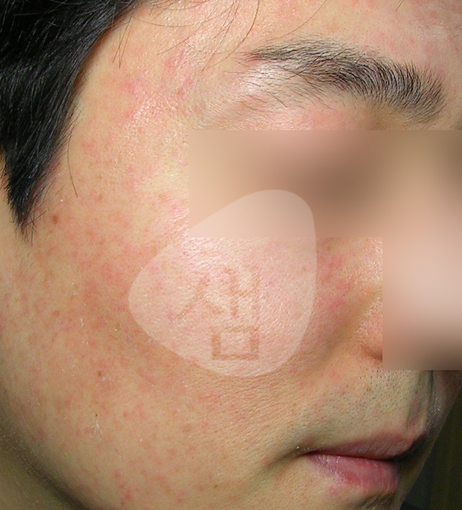 안면부 습진형으로 홍조가 퍼지는 경우임