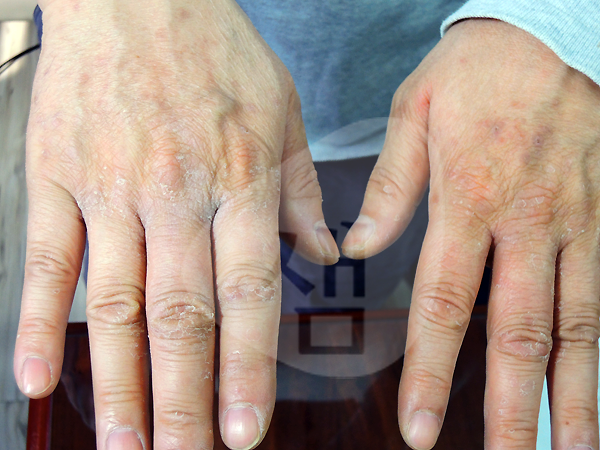 <주소증>- 한포진손바닥 손등의 한포진으로 소양감 수포가 퍼진 케이스<스킨쿼드>- 간열형<경과>- 한약치료: 4개월- 약침치료: 1회/주