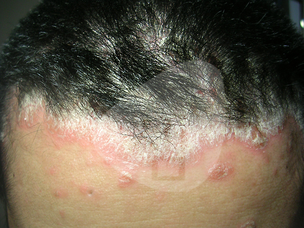 - 두피에 발생한 중증 건선으로 인해 소양감, 구진이 심하게 올라오심