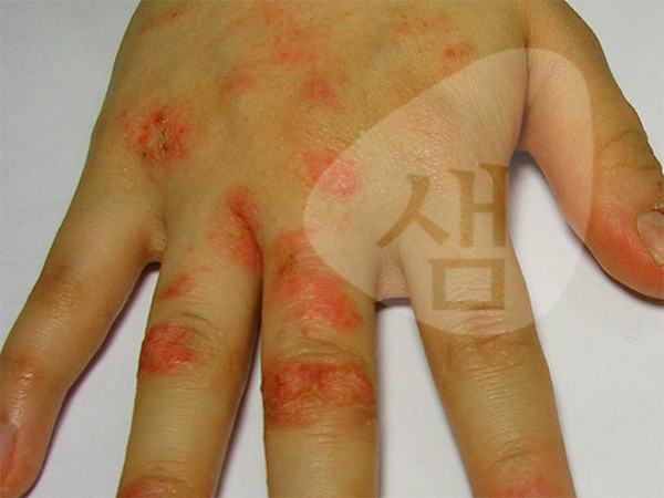 - 손등과 손바닥부위의 경우 소양감이 매우 심해서 2차적인 상처가 흔히 발생함
