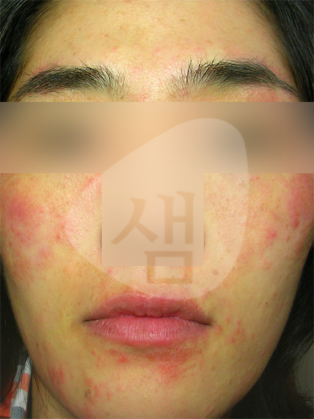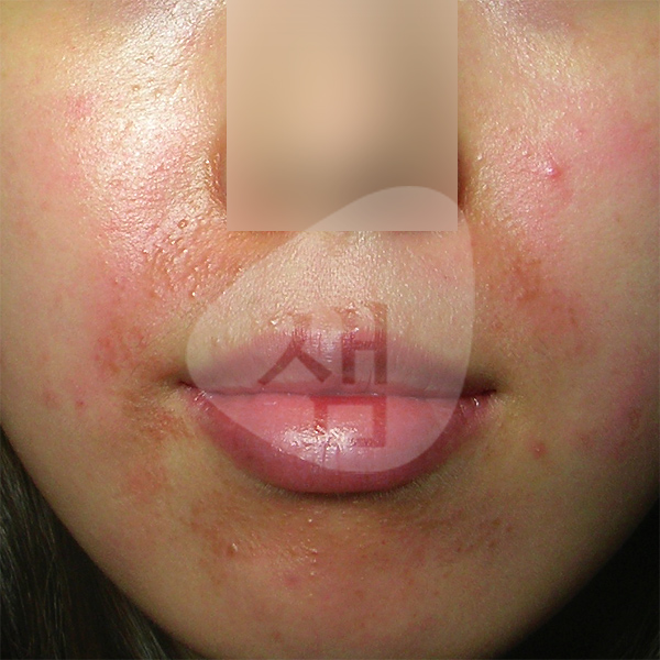- 상기 환자는 안면부에 발생한 홍조형, 구진형 지루성피부염으로 소양감과 홍반이 퍼지 형태
