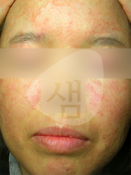 - 안면부에 발생한 습진형 지루성피부염 - 염증이 얼굴 전체로 퍼진 중증형 타입