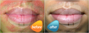- 입주변에 발생한 매우 완고한 지루성피부염 - 수년전부터 입주변에 수포가 동반되고 가려움이 발생하면서 지속적으로