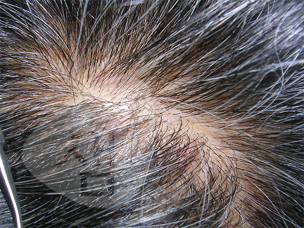 - 지루성두피와 이로 인한 모낭염이 두피에 퍼짐 - 두피가 가렵고 염증에 의한 통증이 매우 심함 &