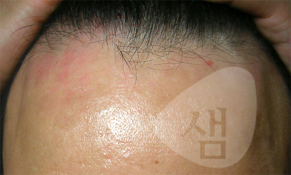 c/c- 두피와 얼굴에 전체적으로 퍼진 중증 지루성피부염o/s- 수년전부터 증상이 심했음, 악화와 호전을 반복하면서 피부과 연고를 줄기차게 바르심, 최근 증세가