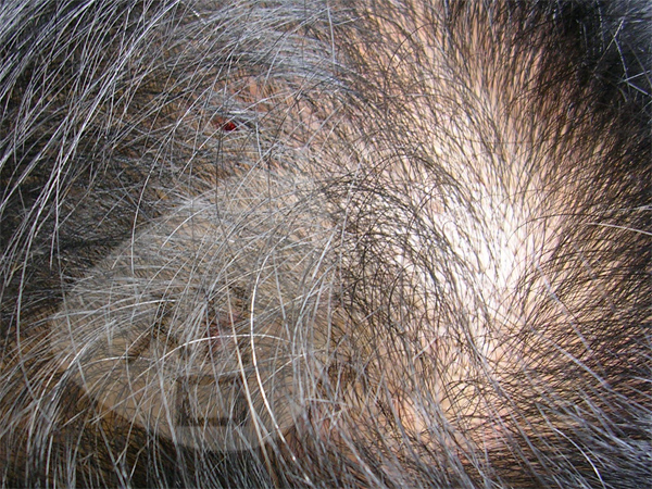 - 두피의 소양감과 습진이 퍼진 상태로 매우 급성적으로 번진 상태임&