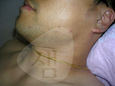 <주소증> - 턱주변의 만성적인 가려움, 진물을 동반한 지루성피부염 - 피부과 치료시 호전후 악화를 1년간 반복하심