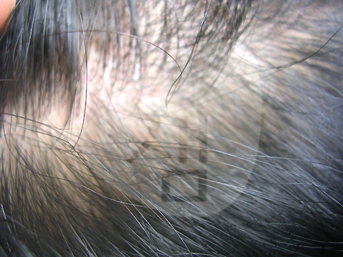 <주소증> - 두피의 지루성피부염에 의한 홍반, 가려움, 비듬이 심한 상태였음 - 5년전부터 조금씩 심해지면서 점차 심해지심<