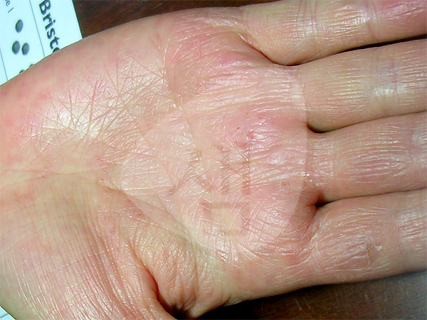 - 손바닥에 발생한 한포진 - 한포진의 경우 가려룸증이 매우 심하여 일상생활이 힘듬