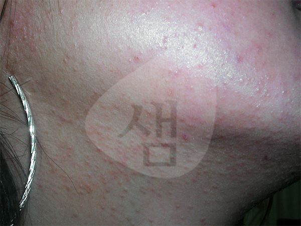 - 좁쌀 여드름이라고 하는 폐쇄형 면포가 수백개 존재하는 경우임