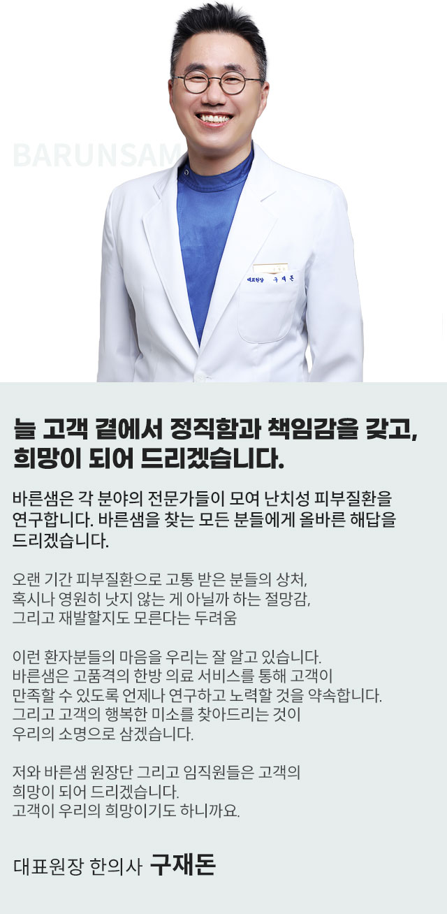 바른샘소개 > 인사말 바른샘소개 > 미션&비전 바른샘소개 > 진료안내 바른샘소개 > 오시는길 바른샘소개 > 의료진소개 바른샘소개 > 피부질환 외길 20여년 바른샘소개 > 공지사항